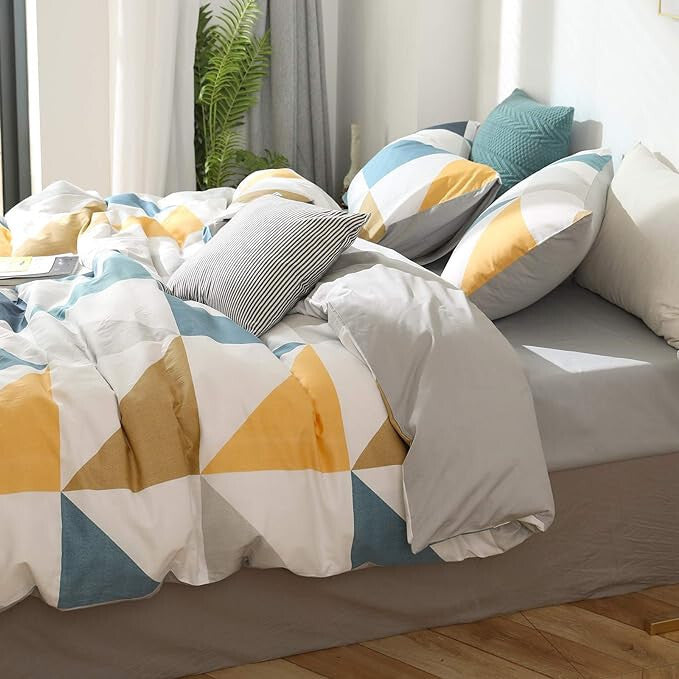 - Užite si luxusné pohodlie a čistý štýl s setom posteľnej bielizne GETIYA s modro-žltým geometrickým vzorom, ktorý je ideálnou voľbou do každej modernej spálne. Poťah z 100 % čistej bavlny je mäkký, priedušný a šetrný k pokožke, takže je celoročne ideálny pre pohodlný a pokojný spánok.