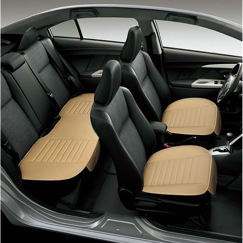 Béžový ochranný poťah na zadné sedadlo je vyrobený z odolnej koženej látky, ktorá je vodotesná, umývateľná a vyhrievateľná, čím poskytuje maximálnu ochranu sedadlám auta. Ľahko sa čistí a dodáva elegantný vzhľad interiéru vozidla.