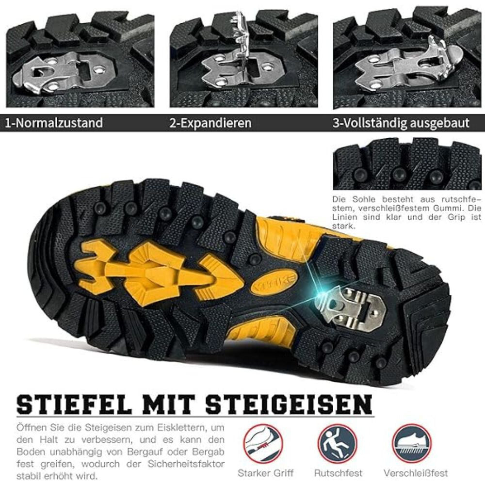 - Topánka má jedinečný vzor vonkajšej podrážky a kovové "pazúry", ktoré zabezpečujú silnú priľnavosť, aby si sa nešmykol na hladkých povrchoch.