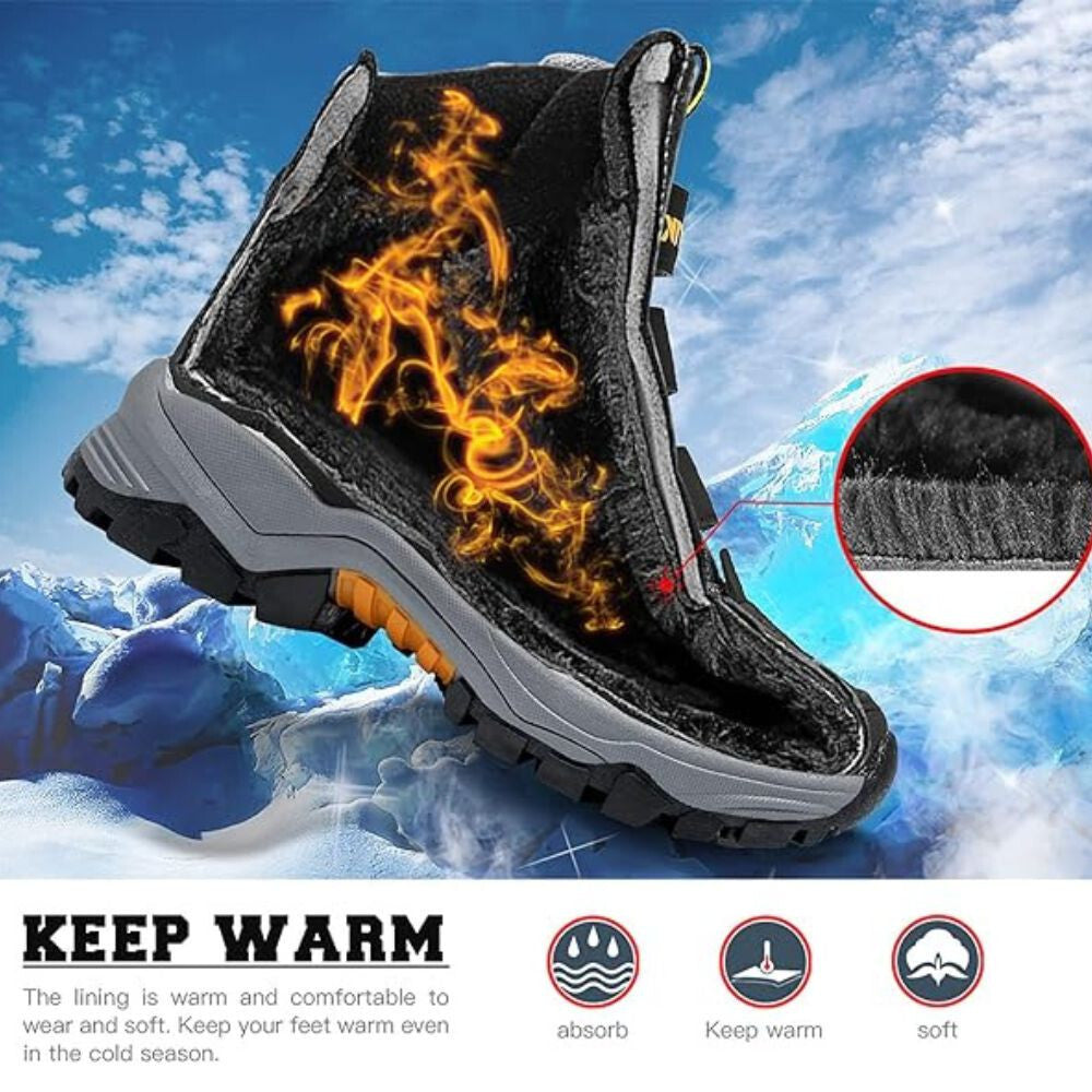 - Mäkký a kvalitný vrchný materiál z umelej kože a sieťovina pre odolnosť a pohodlie. Nepremokavá, vetruvzdorná a odolná voči snehu topánka.