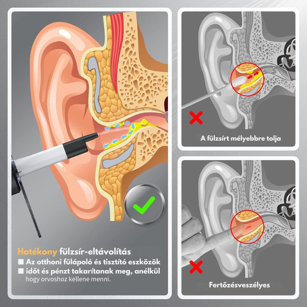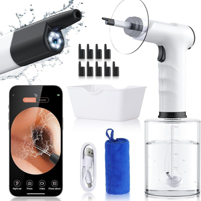 - Elektrický odstraňovač ušného mazu ponúka moderné a efektívne riešenie pre domáce čistenie uší. Technológia oplachovania vodnou tryskou, nastaviteľné stupne tlaku, ako aj zabudované LED osvetlenie a kamera umožňujú šetrné, no dôkladné odstránenie ušného mazu bez nepríjemností. Ideálna voľba pre všetkých, ktorí hľadajú bezpečné, liekmi neovplyvnené riešenie pre pravidelnú starostlivosť o uši.