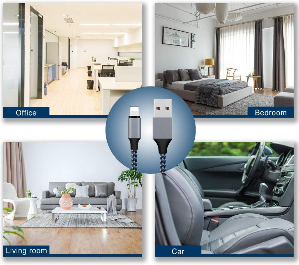 - Bezpečný a rýchlonabíjací iPhone kábel: Tento iPhone nabíjací kábel s certifikátom MFi používa MFi čip a je vyrobený z prémiových medených vodičov. Dlhé Lightning káble sú vyrobené z vysokočistého jadra a inteligentného Lightning čipu, ktorý podporuje nabíjací prúd až 2,4 A a prenosovú rýchlosť 480 Mbps. Vďaka rýchlej synchronizácii a nabíjaniu šetrí čas.