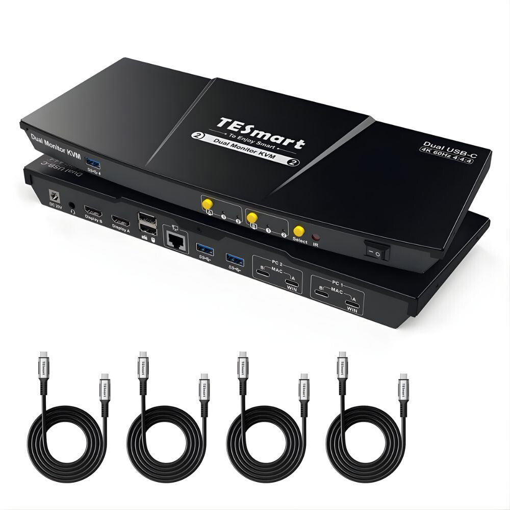 TESmart Dvojitá Monitorová KVM Dokovacia Stanica – 2×2 USB-C, 4K@60Hz, EDID, MST, Pre 2 Notebooky