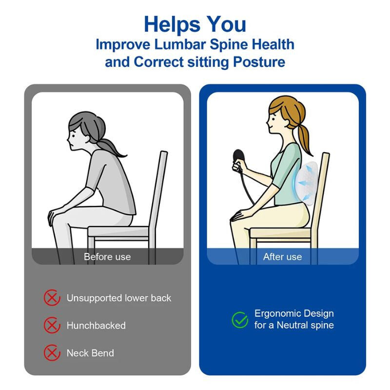 - Kompaktné rozmery: 56 × 27 × 10 cm (±1 cm) - Tento bedrový vankúš s pumpičkou nielenže poskytuje pohodlie, ale prispieva aj k lepšej pohode pri sedení a ležaní. Vďaka kompaktnej konštrukcii je ľahko prenosný, takže ho môžeš používať kdekoľvek potrebuješ extra oporu.