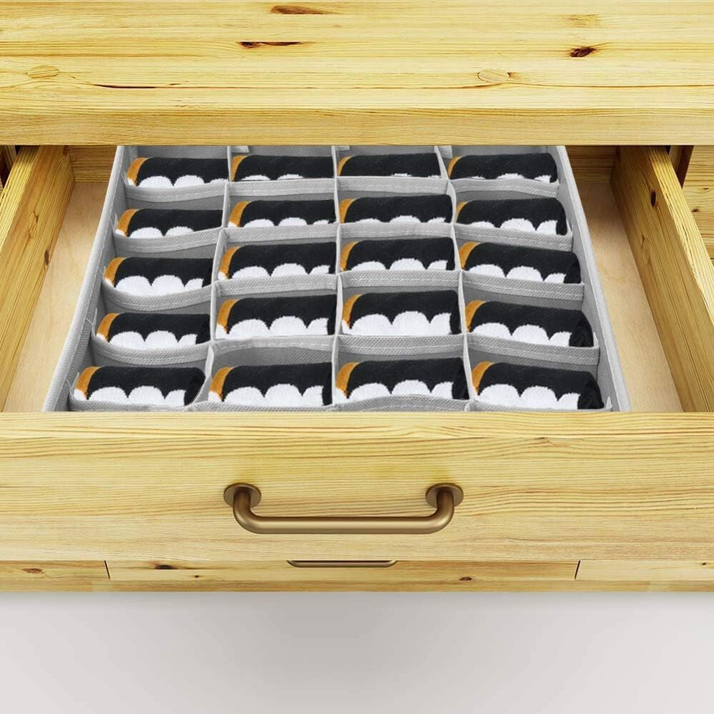 - Tento organizér s 24 priehradkami je ideálnym riešením pre prehľadné a usporiadané uloženie menšieho oblečenia a doplnkov, pričom šetrí miesto v skrini alebo zásuvke.