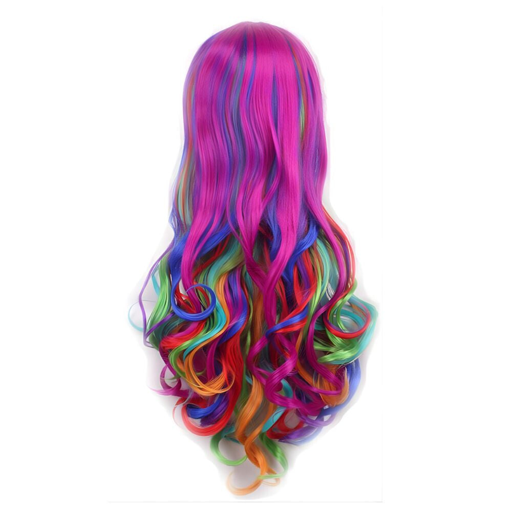 - Dlhá dúhová parochňa pre ženy – kučeravá, viacfarebná cosplay a párty kostýmová parochňa, teplu odolné syntetické vlasy