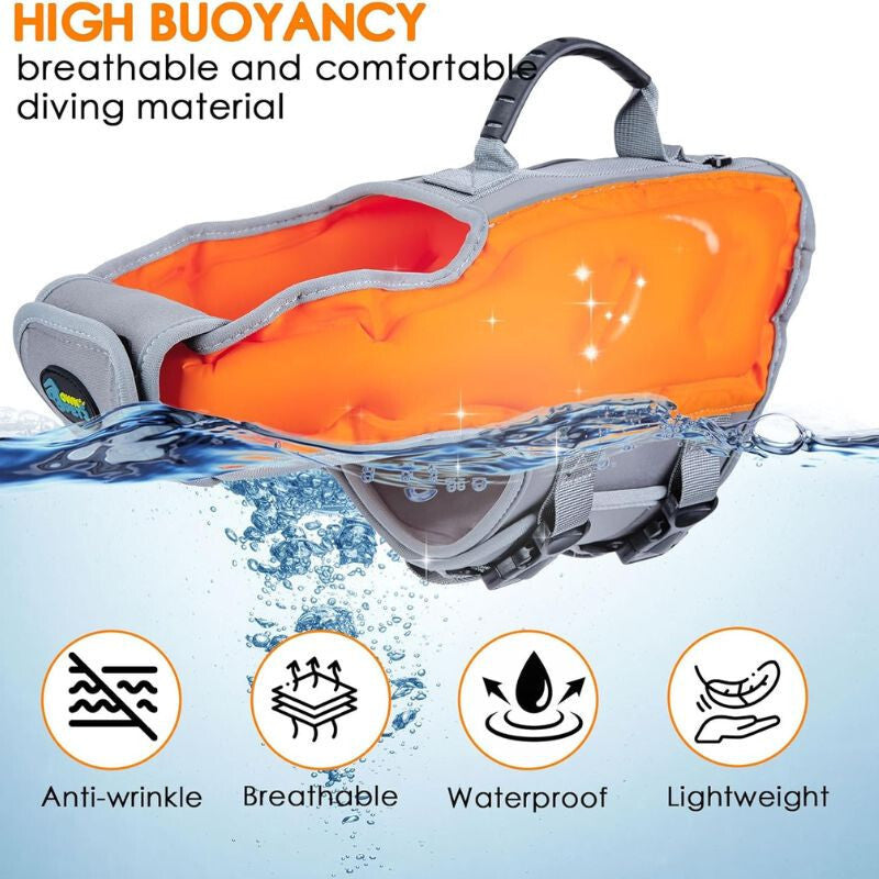 Odolné a pohodlné materiály: Záchranná vesta pre psy je vyrobená z prémiových materiálov, ktoré sú nielen odolné, ale aj pohodlné pre vášho psa. Ľahká Oxfordová tkanina a neoprénový materiál zabezpečujú, že váš pes bude pohodlne oblečený celý deň, pričom poskytujú stabilitu a plávanie vo vode.