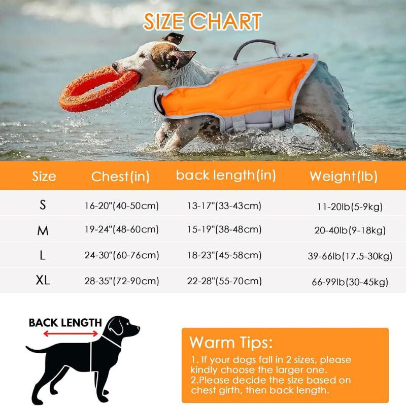 Vynikajúca viditeľnosť a bezpečnosť: Žiarivá oranžová farba a reflexné pásiky zabezpečujú maximálnu viditeľnosť vo vode, aby bol váš pes vždy ľahko rozpoznateľný.