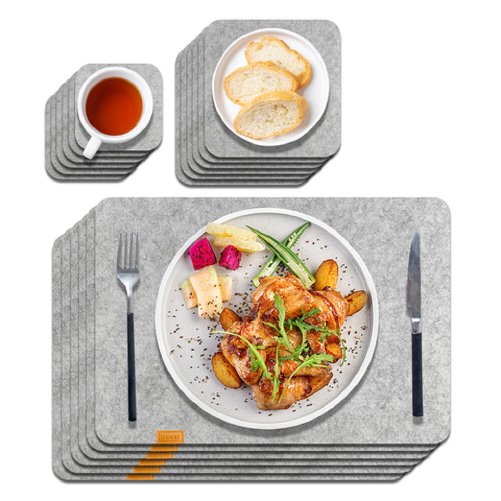 Sada obsahuje 6 podložiek pod taniere, 6 podložiek pod poháre a 6 podložiek pod šalátové misy, čím poskytuje komplexnú ochranu jedálenského stola. Či už ide o rodinnú večeru, prijímanie hostí alebo bežné stolovanie, táto sada vždy zabezpečí estetický a uprataný vzhľad stola.