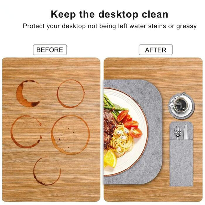 - Spoľahlivá ochrana: Teplu odolný a nepoškriabateľný povrch chráni stôl pred poškodením.