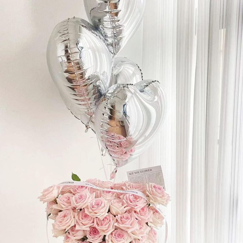 - Fóliové balóniky srdce strieborné 30 ks 40x45 cm