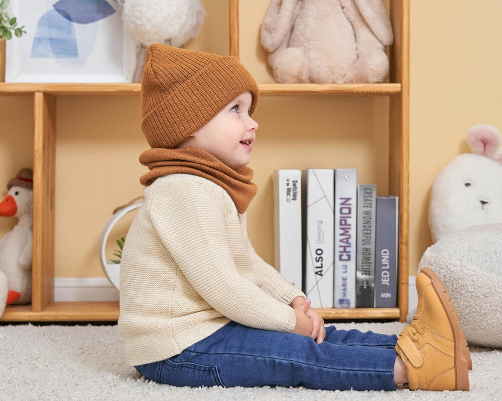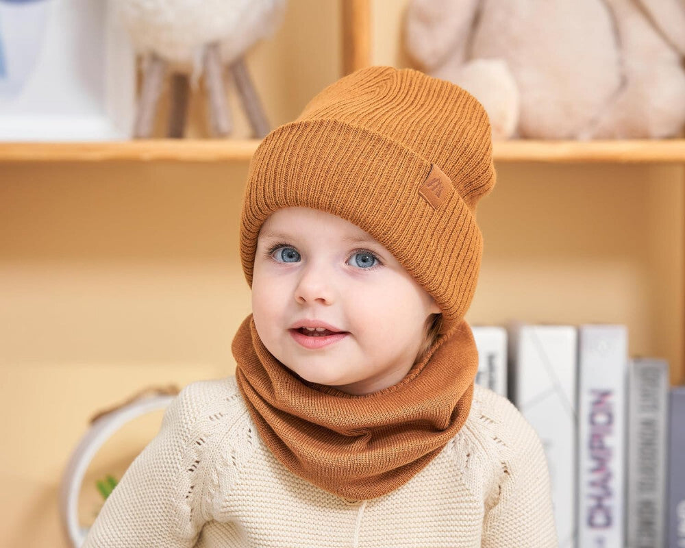 - AHAHA čiapka a kruhový šál sada pre malé deti - veľkosť M, hnedá, teplý zimný doplnok