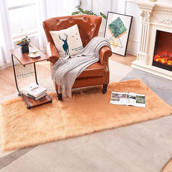 - Topspitgo Koberec z umelého kožúška – karamelovo hnedý, 60x90 cm, mäkký dekoratívny koberec do spálne alebo obývačky