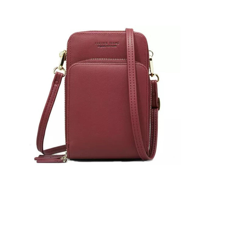 - Módna Dámska Mobilná Ramenná Taška (Bordová)