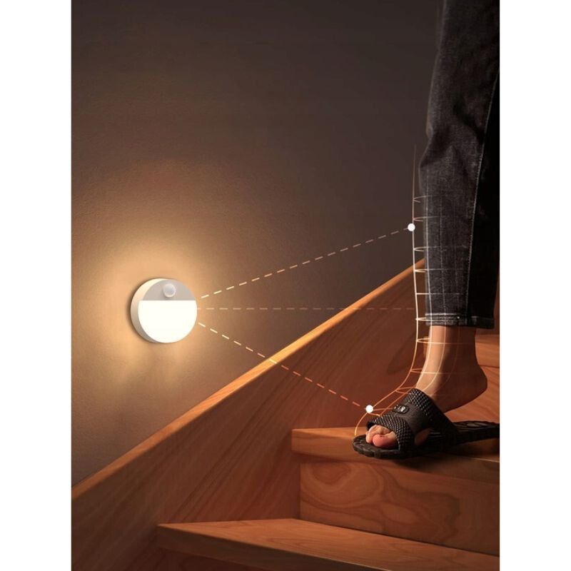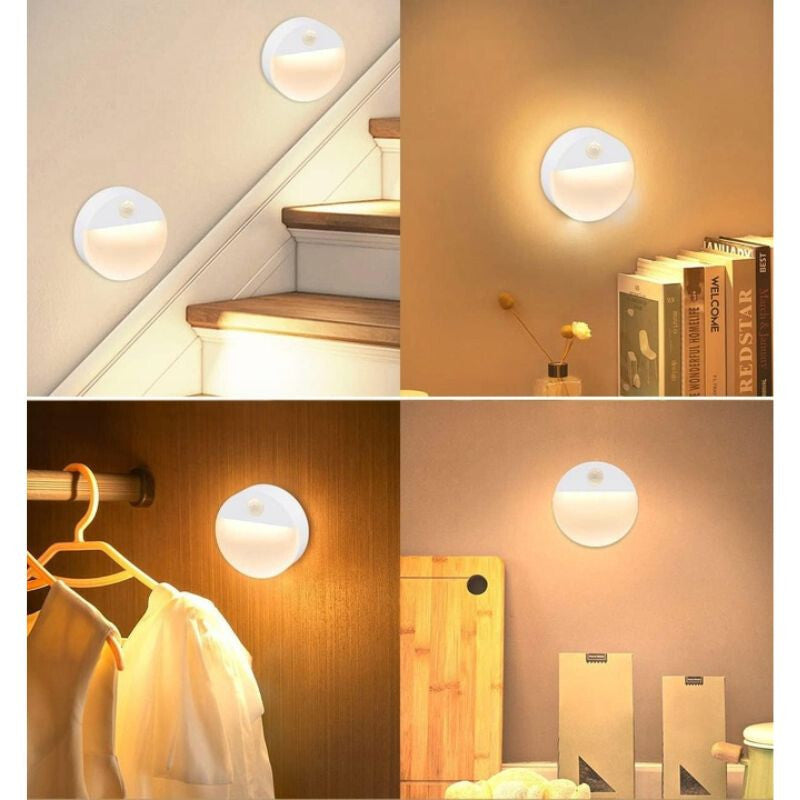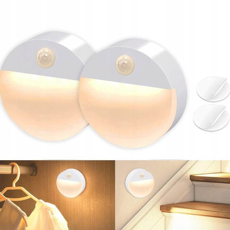- 2 ks Batériové, bezdrôtové okrúhle LED nástenné svietidlo - s PIR snímačom pohybu, na nočné osvetlenie