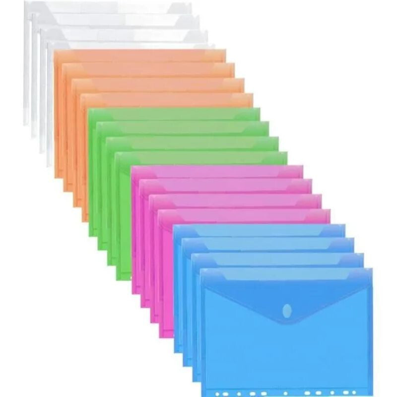 Udržiavajte svoje dokumenty, faktúry, poznámky alebo školské materiály v poriadku s touto prémiovou sadou 20 obalov na dokumenty, ktorá je navrhnutá špeciálne pre usporiadané a bezpečné uloženie dokumentov. Sada obsahuje 5 rôznych žiarivých farieb obalov – oranžová, svetlomodrá, zelená, ružová a priehľadná – takže môžete ľahko triediť rôzne typy dokumentov a rýchlo nájsť, čo hľadáte.