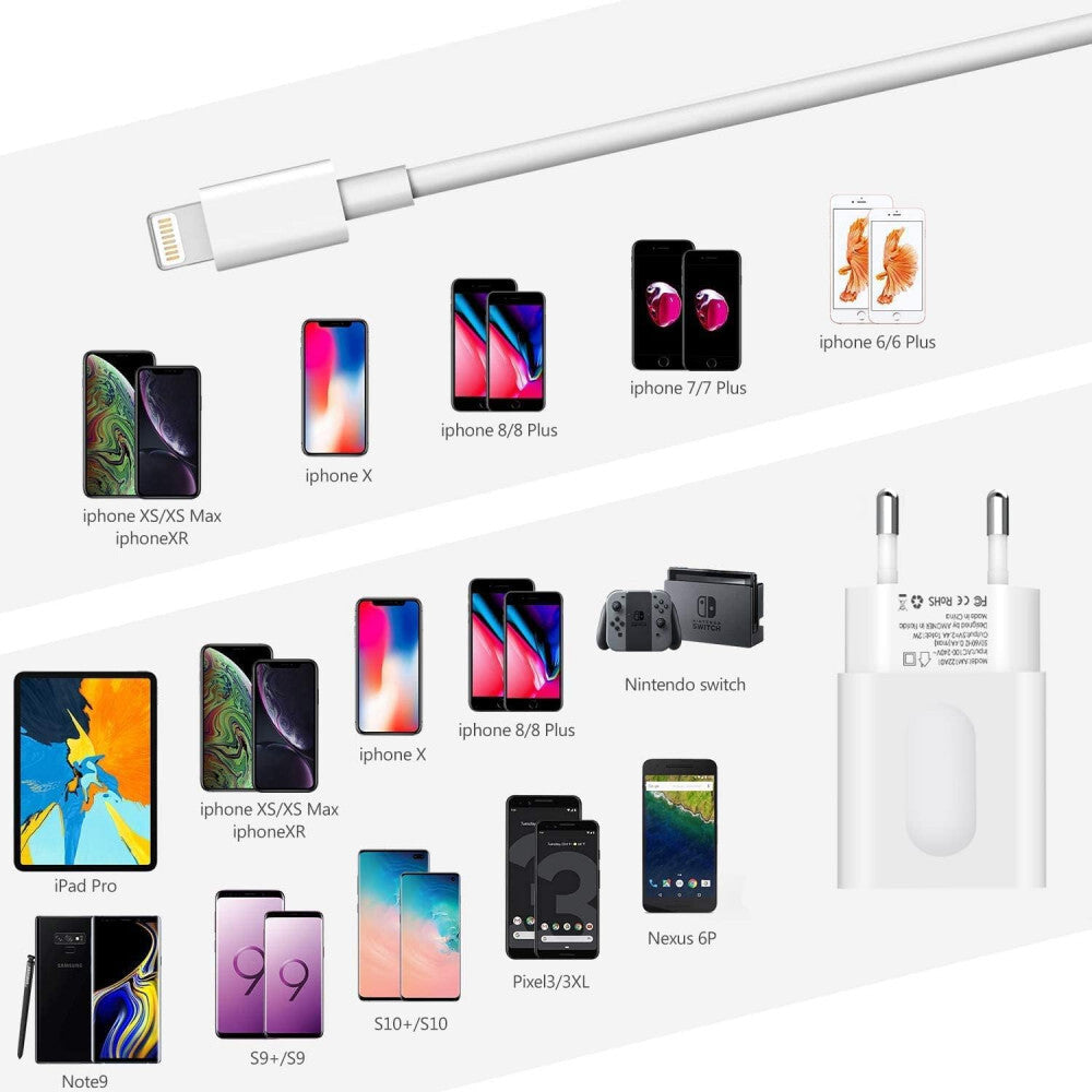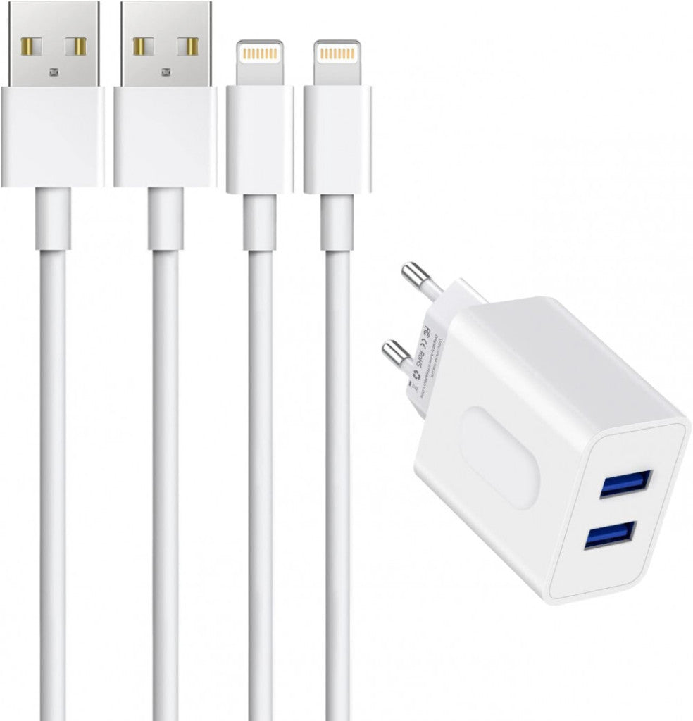 Amoner 2-Portový USB-A Stenový Nabíjací Adaptér, 2 ks Lightning Káblov pre Apple Zariadenia