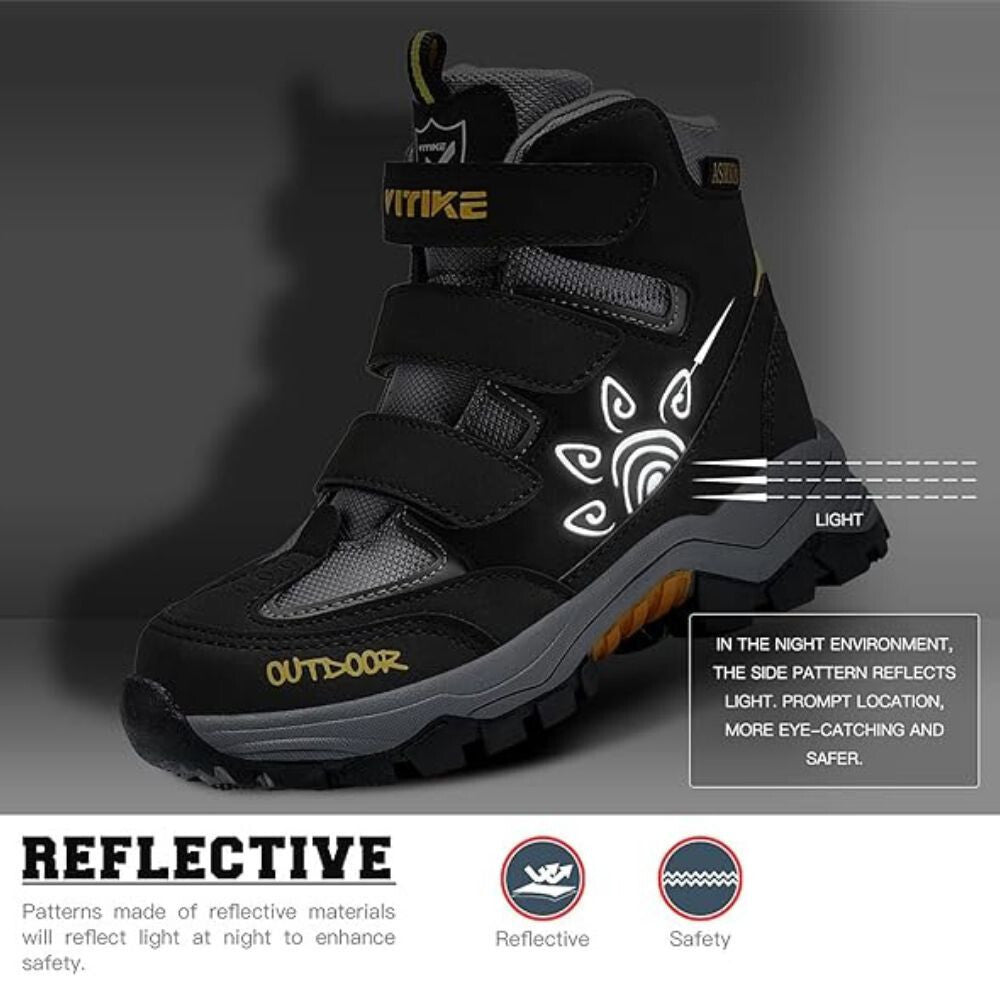 - Mäkký a kvalitný vrchný materiál z umelej kože a sieťovina pre odolnosť a pohodlie. Nepremokavá, vetruvzdorná a odolná voči snehu topánka.