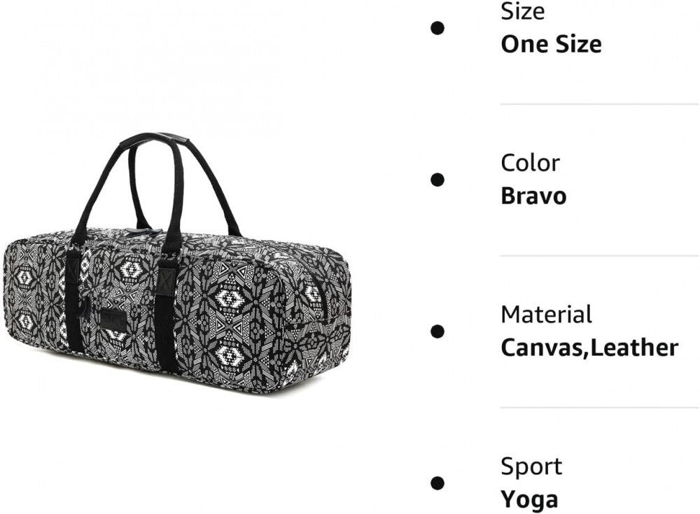 - Rozmery: 69 cm dĺžka x 20 cm šírka x 20 cm výška. Táto taška je dostatočne veľká a odolná na to, aby ste v nej mohli nosiť svoju jógovú podložku, bloky, uterák, pás, fľašu na vodu, peňaženku, telefóny, prezlečenie a ďalšie osobné drobnosti.