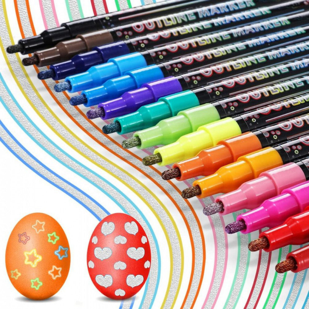 Buluri Sada 15 ks kontúrových fixiek - dekoračné fixky na papier, sklo a drevo