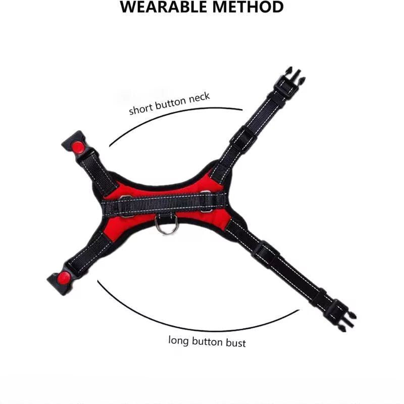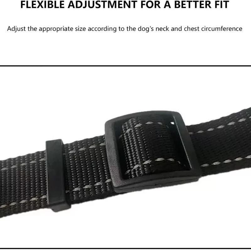Postroj je vyrobený z vysoko kvalitného, odolného materiálu, ktorý dlhodobo odoláva opotrebovaniu spôsobenému každodenným používaním. Vďaka mäkkej podšívke je pohodlný na nosenie aj počas dlhších prechádzok alebo intenzívnych aktivít. Priedušný materiál podporuje cirkuláciu vzduchu, takže pokožka psa zostáva vždy svieža. - Bezpečnosť a kontrola