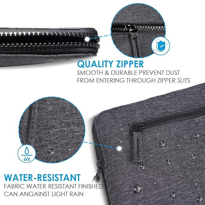 - Prémiová kvalita. Eono obal na notebook s vodeodolným materiálom, tlmiacou výplňou a mäkkou plyšovou podšívkou poskytuje úplnú ochranu proti prachu, postriekaniu vodou, poškriabaniu a nárazom. Použité sú hladké, ale odolné zipsy.
