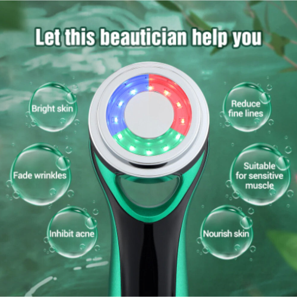 - Multifunkčný ručný čistiaci prístroj na tvár s farebnými svetlami – účinné omladenie a vyhladenie pokožky