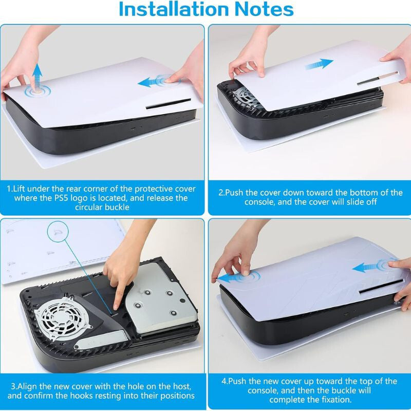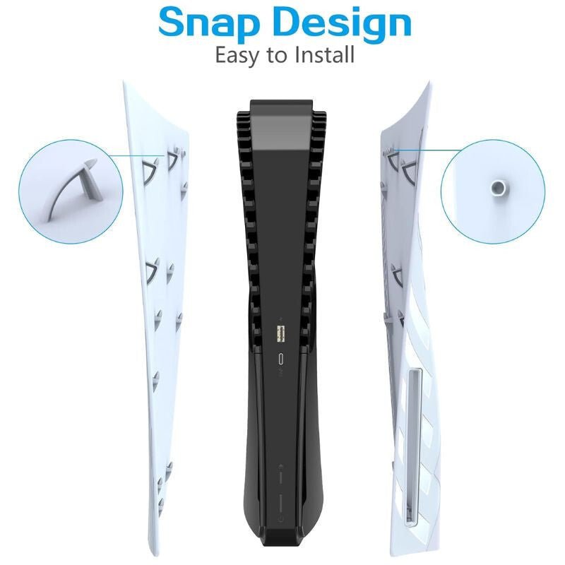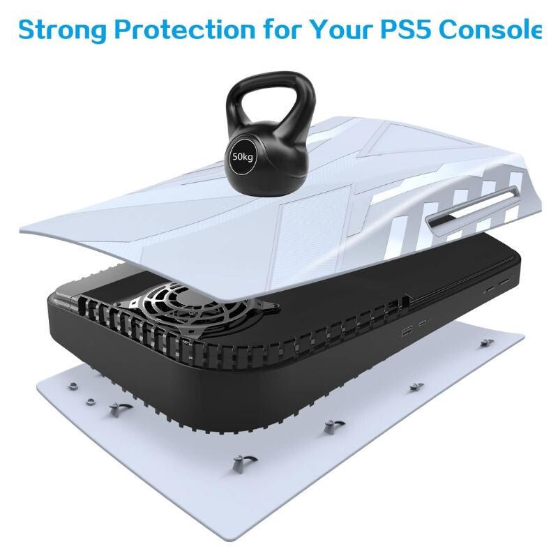 - Pevný materiál ABS: Predný panel je vyrobený z nárazuvzdorného ABS materiálu, ktorý chráni PS5 konzolu pred poškriabaním a zabraňuje usadzovaniu prachu, pričom sa ľahko čistí.