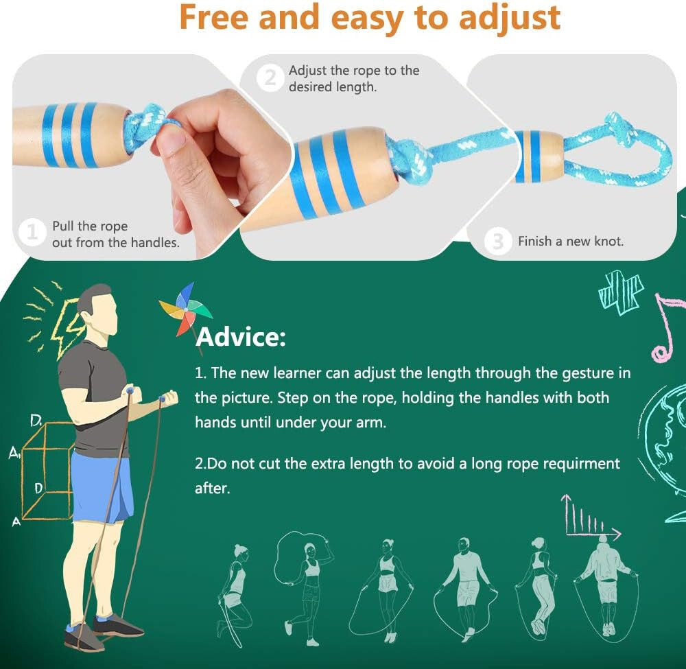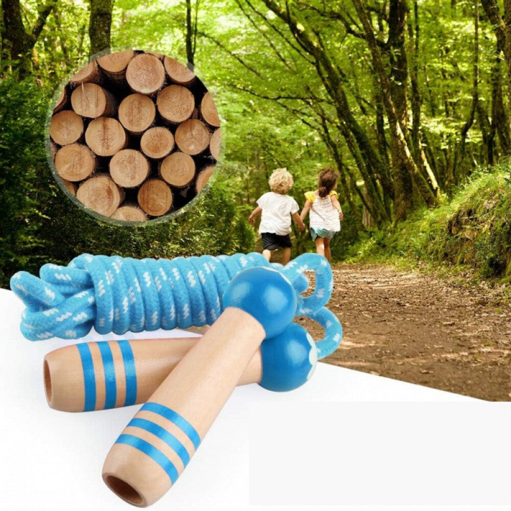 Ľahké, ergonomické drevené rukoväte a odolné bavlnené lano pre bezpečné a pohodlné skákanie