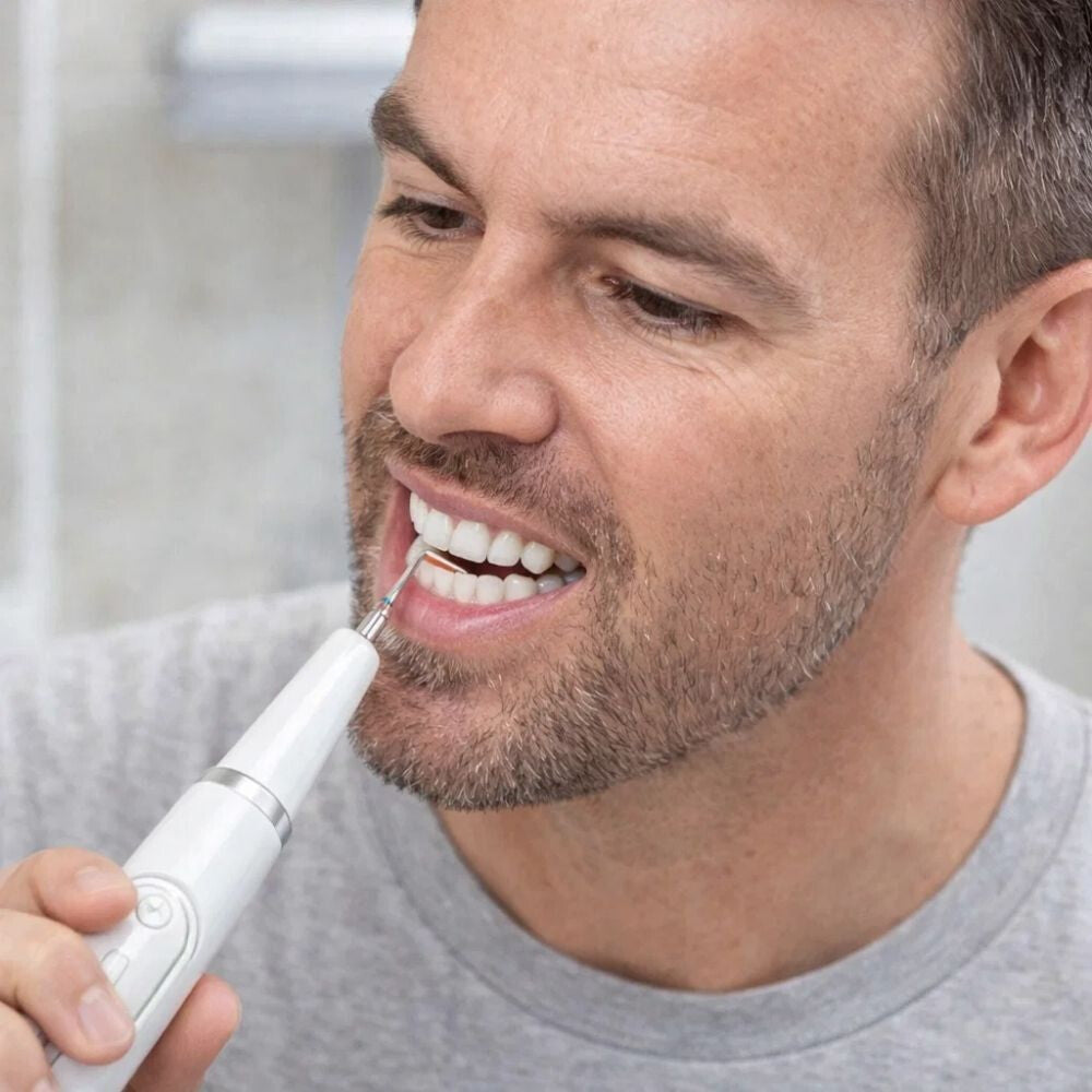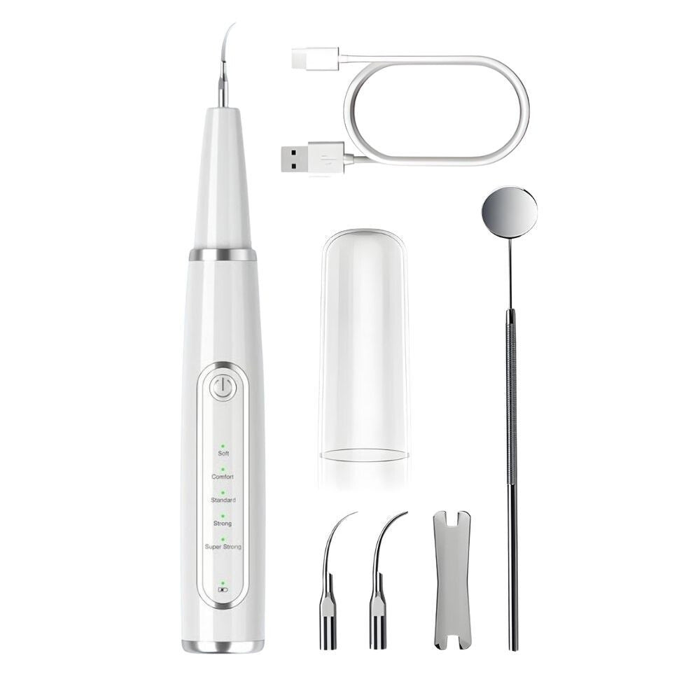 - IPX8 ultrazvukové elektrické zariadenie na odstránenie zubného kameňa účinne pomáha odstraňovať zubný kameň, plak, sfarbenia a usadeniny na zuboch. Vysokofrekvenčná ultrazvuková vibračná technológia cielene uvoľňuje odolné nečistoty, pričom je šetrná k zubnej sklovine a ďasnám.