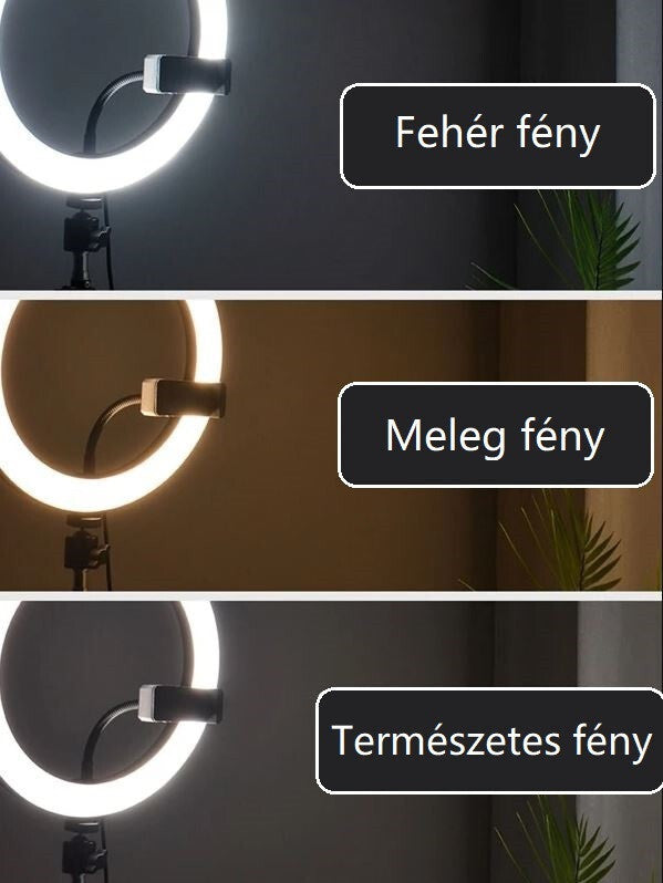 - Stabilný trojnohý stojan zabezpečuje, že kruhové svetlo zostane pevné v každej situácii. Držiak na telefón je vďaka univerzálnemu dizajnu kompatibilný takmer so všetkými smartfónmi.