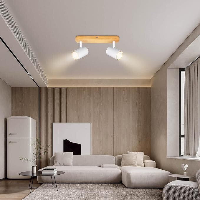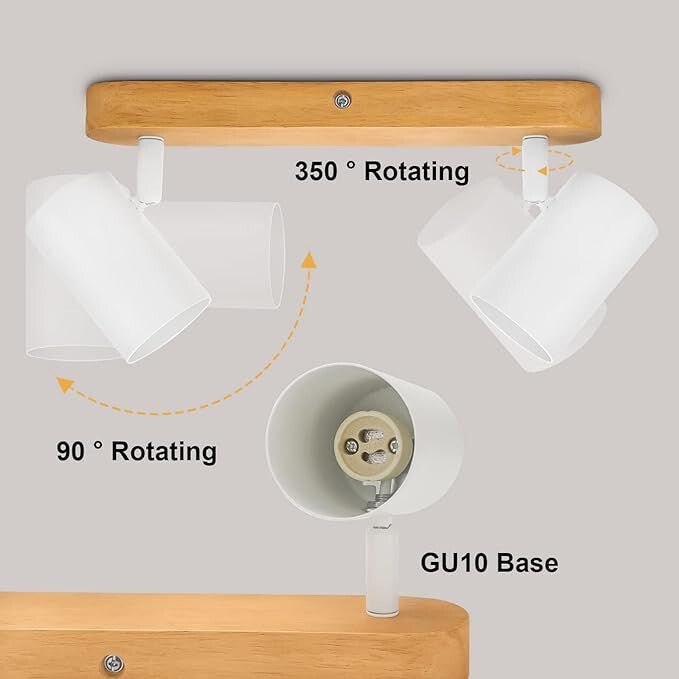 Štýlový dizajn: Kombinácia prírodnej farby dreva a matnej bielej tienidla dodáva jednoduchý a elegantný vzhľad otočnému stropnému bodovému svetlu, ktoré môže doplniť vašu domácu dekoráciu.
