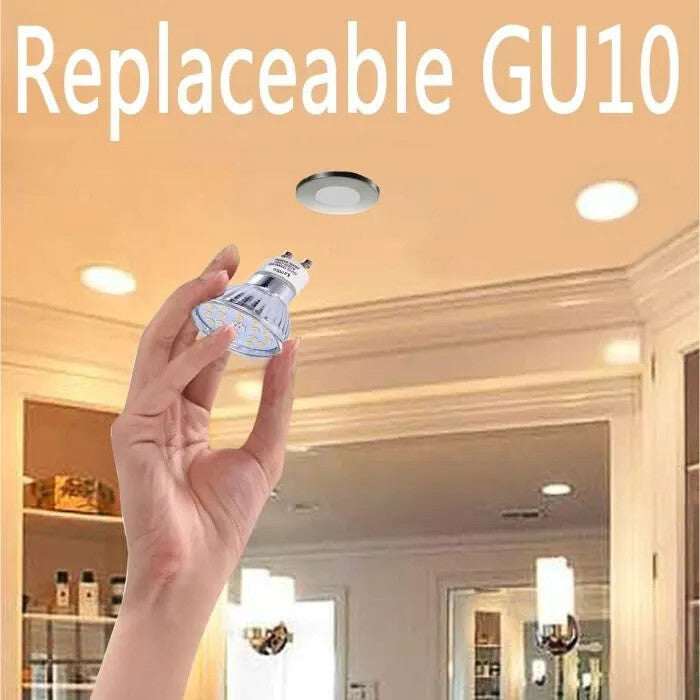 - Jednoduchá výmena žiarovky: Môžete vymeniť za akúkoľvek GU10 žiarovku rovnakých rozmerov. Poznámka: Nie je stmievateľná. Pred kúpou si prosím overte rozmery svietidla: (Ø x V): 50x53 mm. Nie je potrebný transformátor.