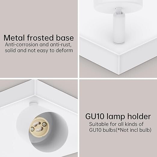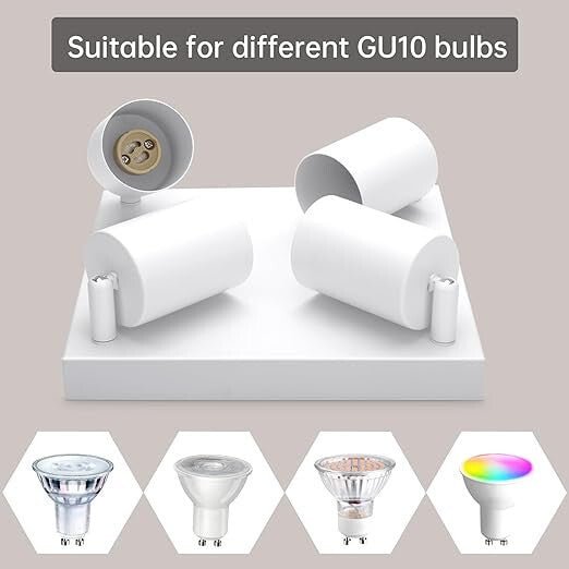 - Štandardná objímka GU10: Biele štvorsmerové stropné bodové svetlo neobsahuje žiarovky GU10. Môžete si vybrať svoje obľúbené žiarovky, ktoré budú ladiť s vašou miestnosťou. Maximálny výkon nepresahuje 50 W.
