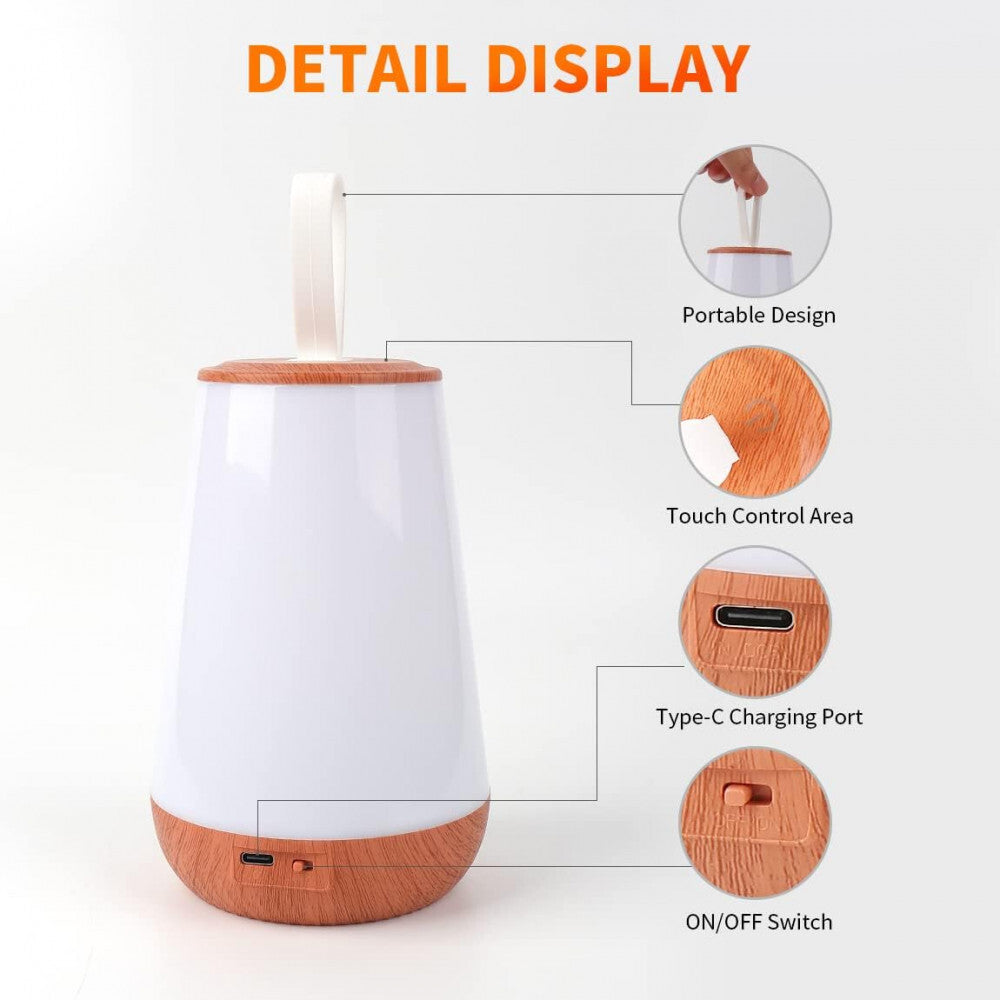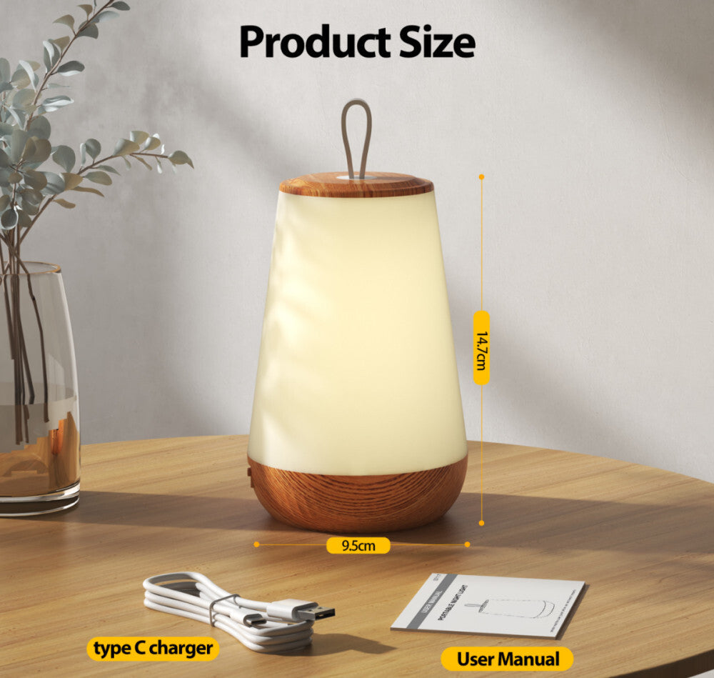 - LED Nočná Lampa – Vzor Dreva, Teplé Svetlo, Stolná Lampa do Spálne