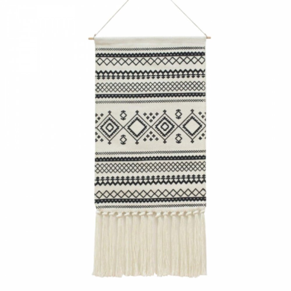 Lomohoo Azték Mintás Faliszőnyeg (Fehér - Fekete) - BShopy