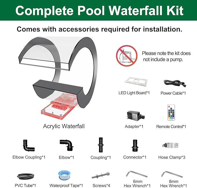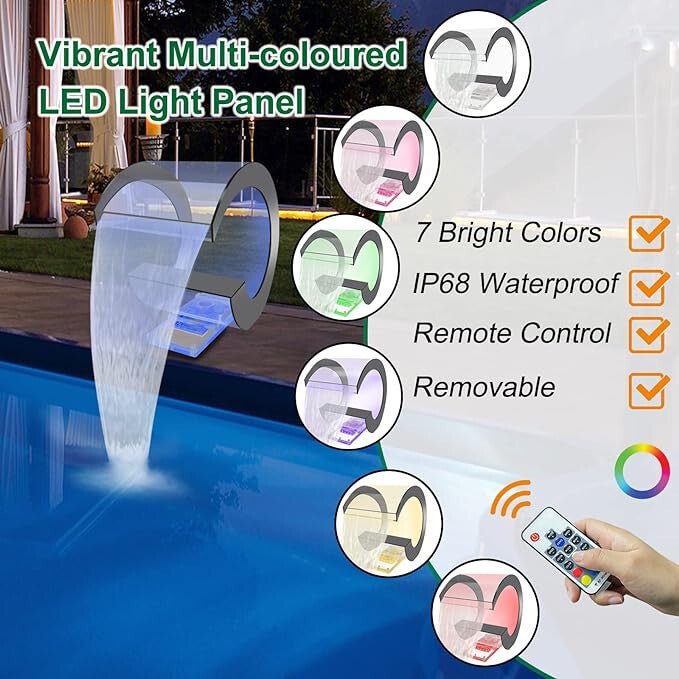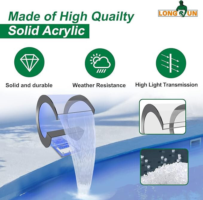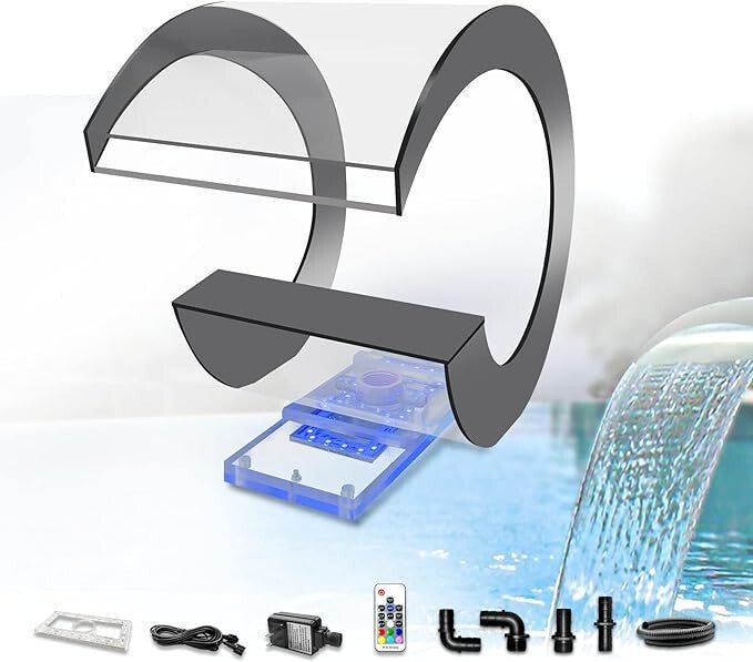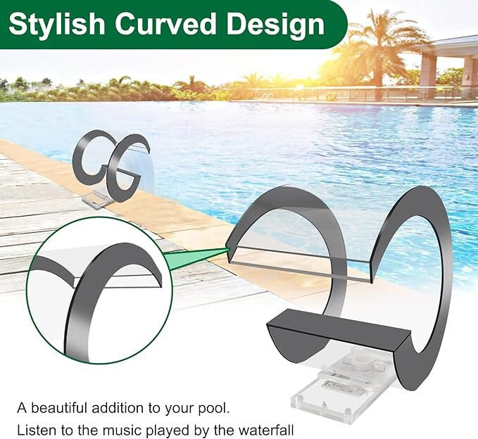 LONGRUN C-tvarovaný vodopádový výtok z nehrdzavejúcej ocele na bazénovú fontánu 36,3 cm