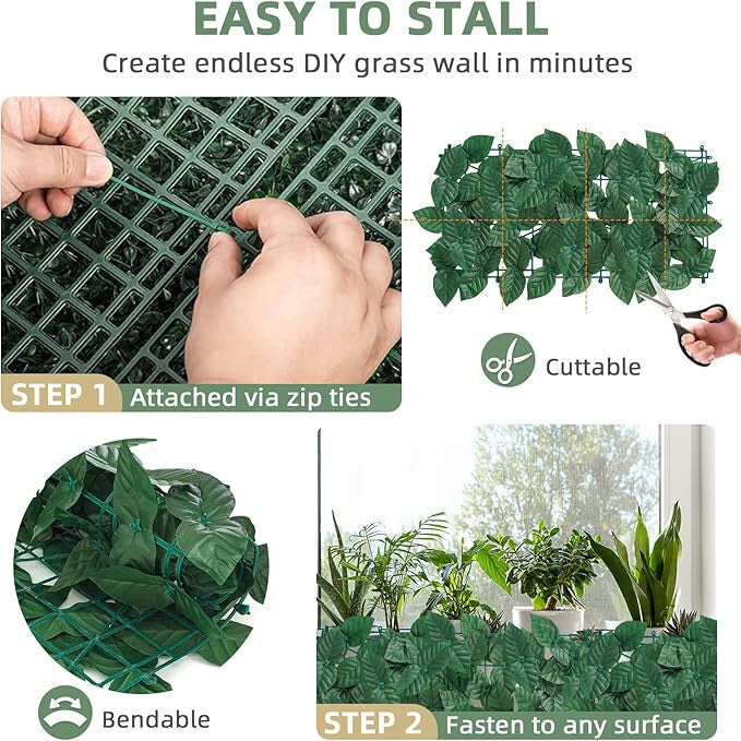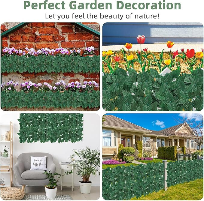 - Pohodlná inštalácia: Táto dekoratívna umelá plotová sieť je vybavená sponami v štyroch rohoch, ktoré umožňujú jednoduchú a rýchlu inštaláciu bez potreby odbornej pomoci. Jednoducho ju namontujete v záhrade alebo na inom vonkajšom mieste bez problémov.