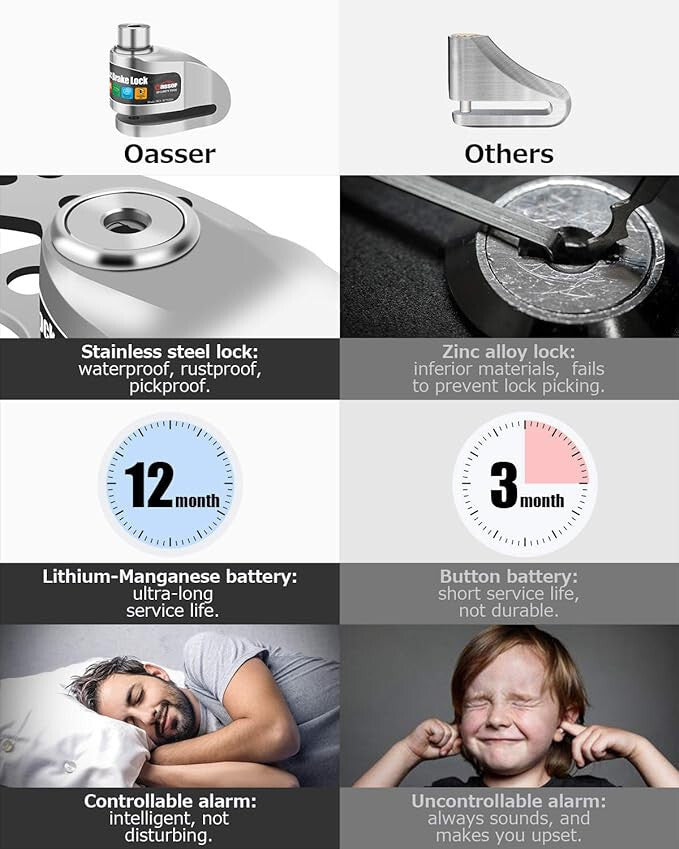 - Oasser Motocyklový Diskový Zámok - 120 dB Alarm, Bezpečnostný Zámok na Motocykel