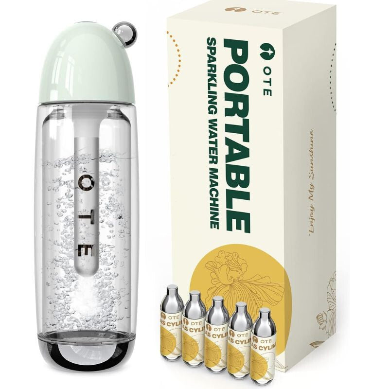 - Pripravuj si svoje obľúbené sýtené nápoje rýchlo a pohodlne s OTE prenosným sóda strojom! Ideálna voľba na každodenné použitie, na cesty alebo ako darček. Maj vždy po ruke čerstvé bublinkové nápoje a užívaj si štýlové a praktické riešenie!