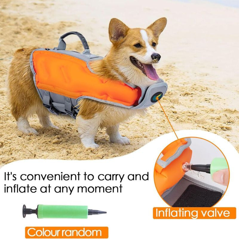 - Ownpets Nafukovací záchranný vesta pre psy je ideálnou voľbou, ak chcete svojmu psovi zabezpečiť bezpečné a pohodlné zážitky vo vode. Kombinácia vysoko kvalitnej Oxford tkaniny a neoprénu poskytuje vynikajúcu odolnosť a vodotesnosť, pričom nafukovacia konštrukcia je ľahká a poskytuje psovi výraznú vztlakovú silu, čím znižuje záťaž vo vode. Okrem toho je k veste priložená ručná pumpa, aby ste ju mohli kedykoľvek jednoducho nafúknuť.