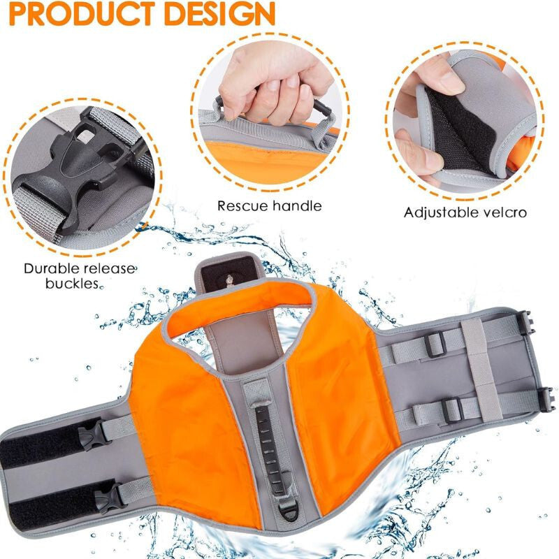 - Maximálna bezpečnosť a viditeľnosť: Reflexné pásy a žiarivý oranžový dizajn zabezpečujú, že váš pes bude vo vode vždy dobre viditeľný.