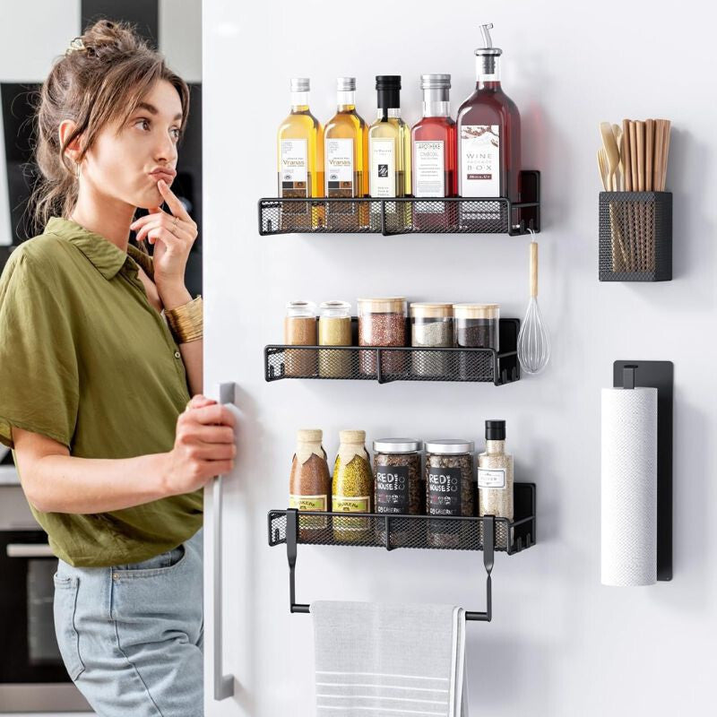- Usporiadajte svoju kuchyňu jednoducho a štýlovo s 6-dielnym magnetickým setom na koreniny PKBD. Toto moderné a praktické riešenie zabezpečí, že vaše koreniny, kuchynské náradie a papierové utierky budú vždy po ruke, pričom budú uskladnené prehľadne a úsporne.