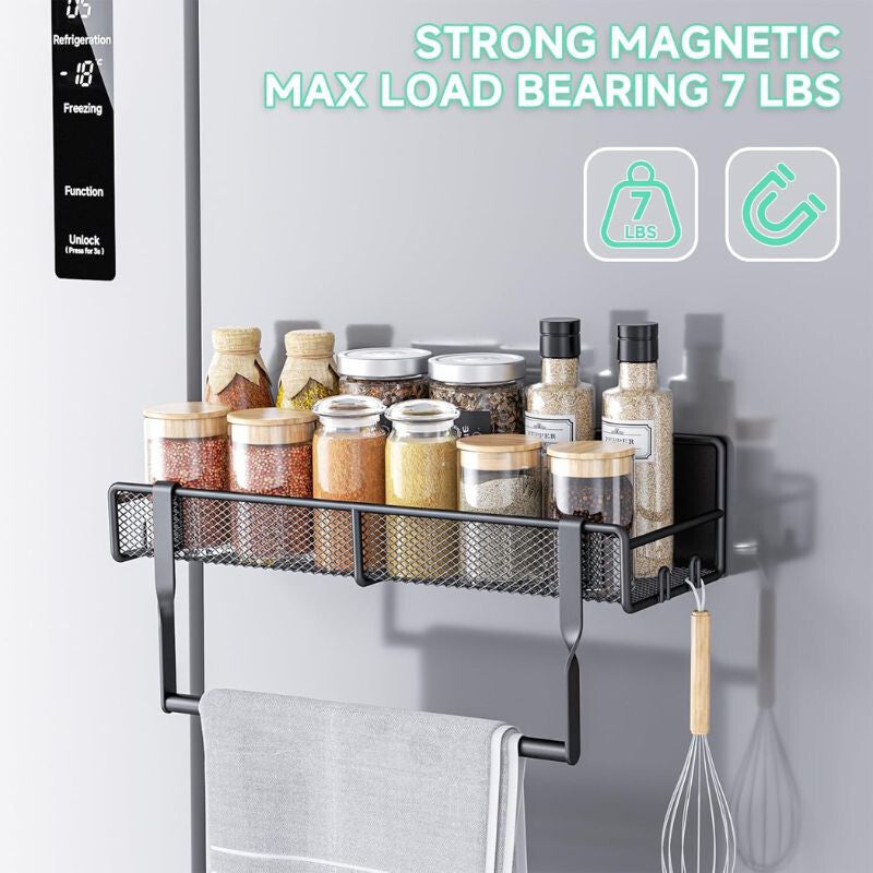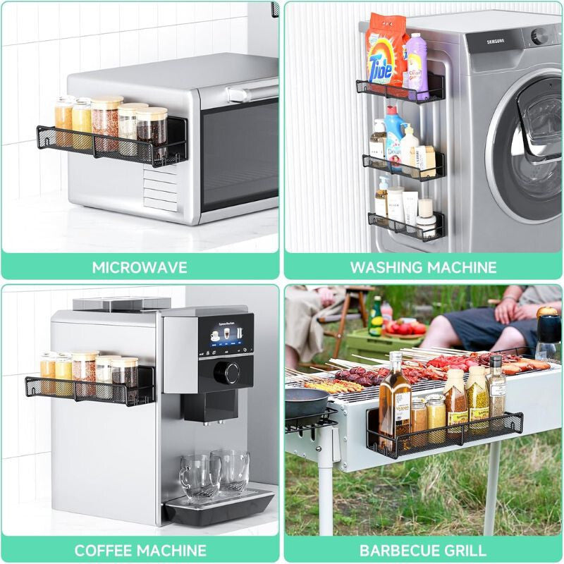 - Set je vyrobený z odolnej nehrdzavejúcej ocele, ktorá odoláva korózii a zaručuje dlhú životnosť. Extra silné magnetické uchytenie unese až 5 kg, takže police pevne držia na chladničkách, mikrovlnných rúrach alebo na akomkoľvek kovovom povrchu – a to bez vŕtania a montáže.