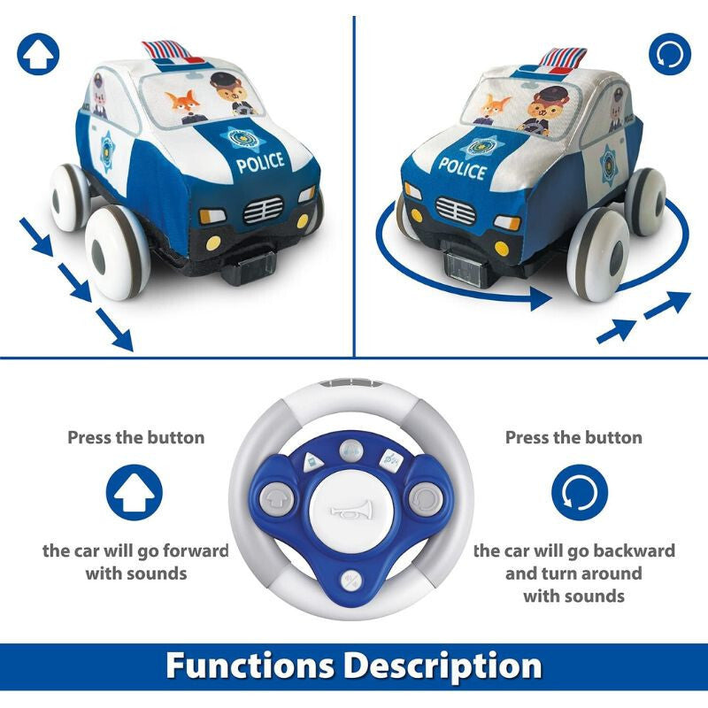 - Mäkká diaľkovo ovládaná autíčková hračka pre bábätká s hracou podložkou (policajné auto)