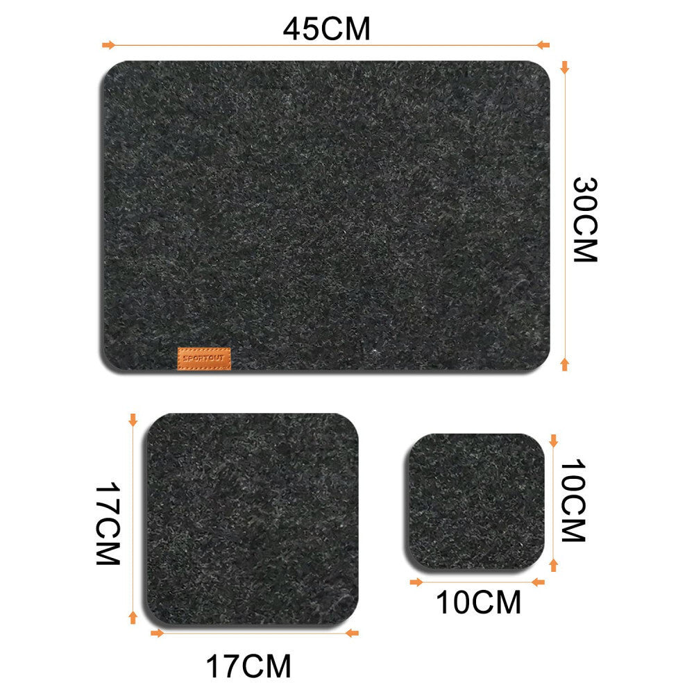 - Oživte atmosféru svojich jedál s prémiovou sadou prestierok SportOut, ktorá je zároveň elegantná a praktická. Tepelne odolný, vodeodpudivý a protišmykový filc poskytuje spoľahlivú ochranu stola pred teplom, škvrnami a poškriabaním, pričom zabezpečuje stabilitu tanierov a pohárov.