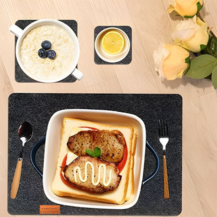 - SportOut Súprava Tmavosivých Podložiek pod Jedálenský Stôl – Silikónová Podložka pod Tanier a Podložka pod Pohár
