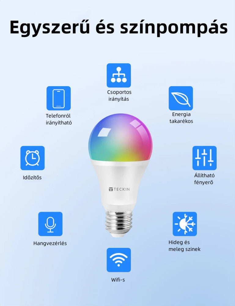 - Teckin SB50 Dúhová LED žiarovka je perfektnou voľbou pre všetkých, ktorí chcú svoj domov spraviť inteligentnejším, pohodlnejším a atmosférickejším. Táto inteligentná LED žiarovka spája funkčnosť, štýl a úsporu energie v jednom modernom riešení – aby sa každé svetlo okamžite prispôsobilo vašej nálade.