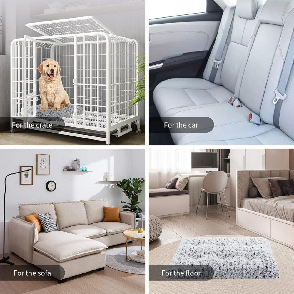 - TEFOMATE Plyšový Psí Posteľ M s Krátkym Chlpom (Sivá)