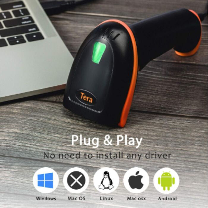- Tera 5100 V6.0 Laserový 1D bezdrôtový čítač čiarových kódov – Oranžový